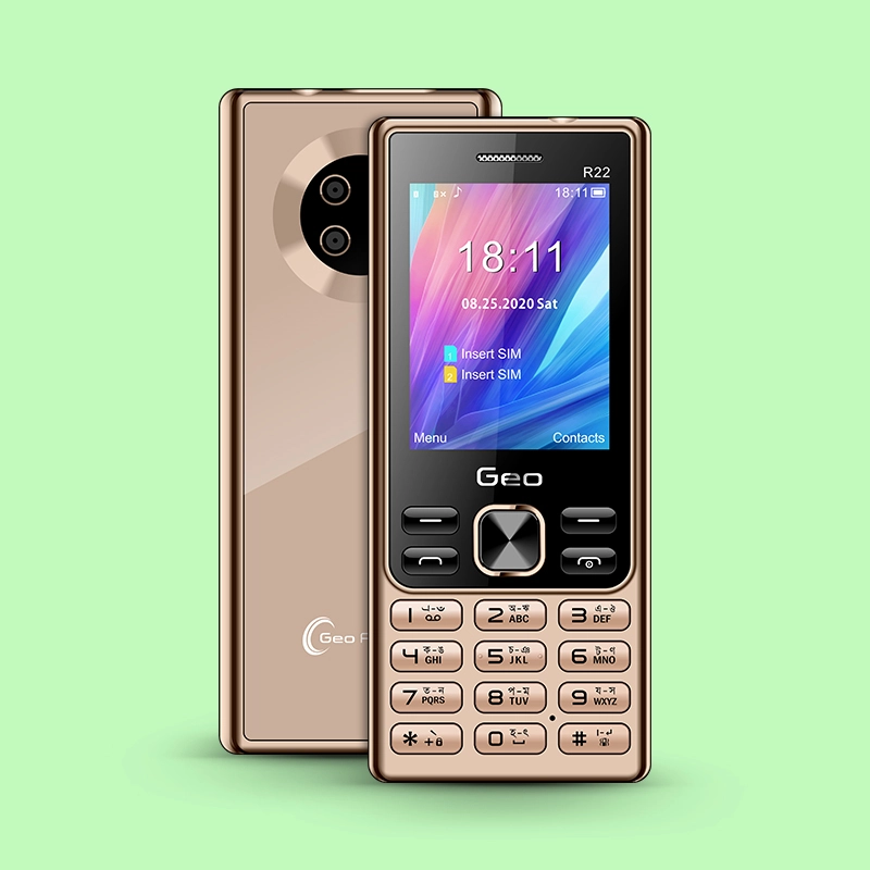 This Geo R22 mini mobile comes with a 2.4-inch display. It has dual SIM-enabled slots, an attractive camera, long battery life, Bluetooth, FM radio, gaming, and a slim design. With this phone, one can speak clearly without any interruption. Also, the user can do audio, video, and Facebooking through this phone.